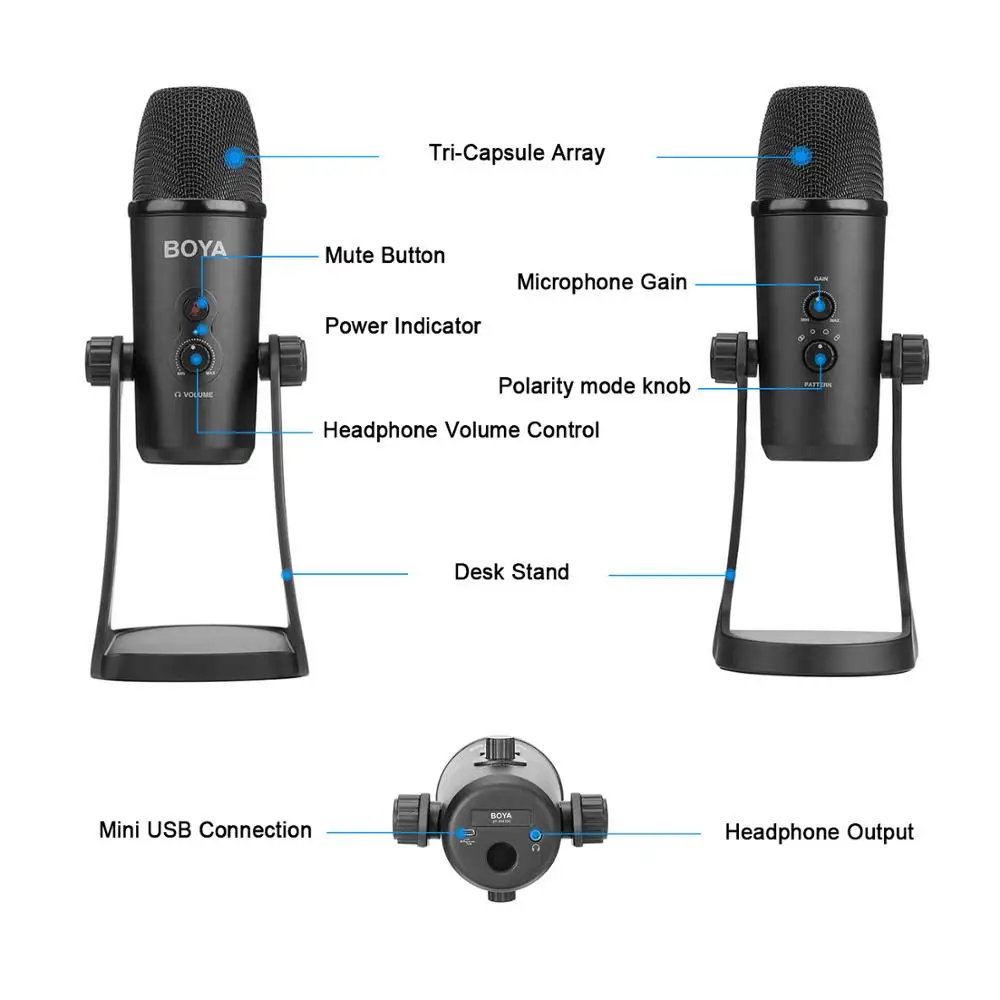 Offer Description of BOYA BY-PM700 USB Condenser Microphone Triple-Capsule for PC Computer Laptop Interview Conferen Recording Video Podcast Live