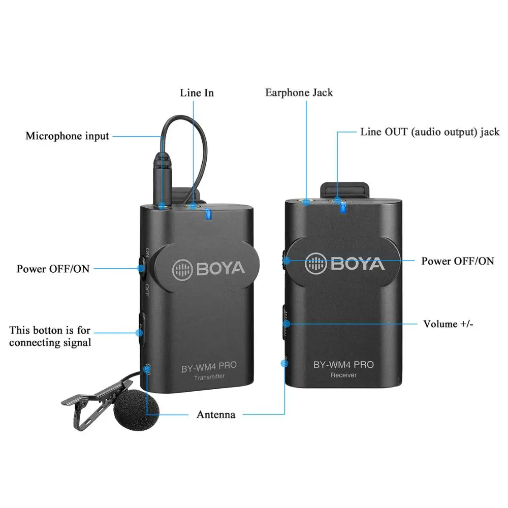 BOYA BY-WM4 Pro Wireless system Condenser Microphone Lavalier Lapel for Camera DV Smartphone for live streaming,vlogging