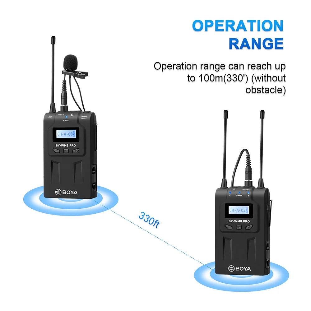 BOYA BY-WM8 Pro UHF Mic Condenser Wireless Microphone Audio Video Recorder Receiver for DSLR Camera Camcorder YouTube Vblog