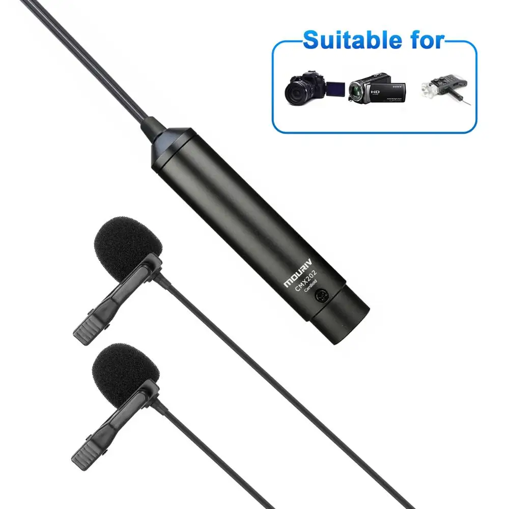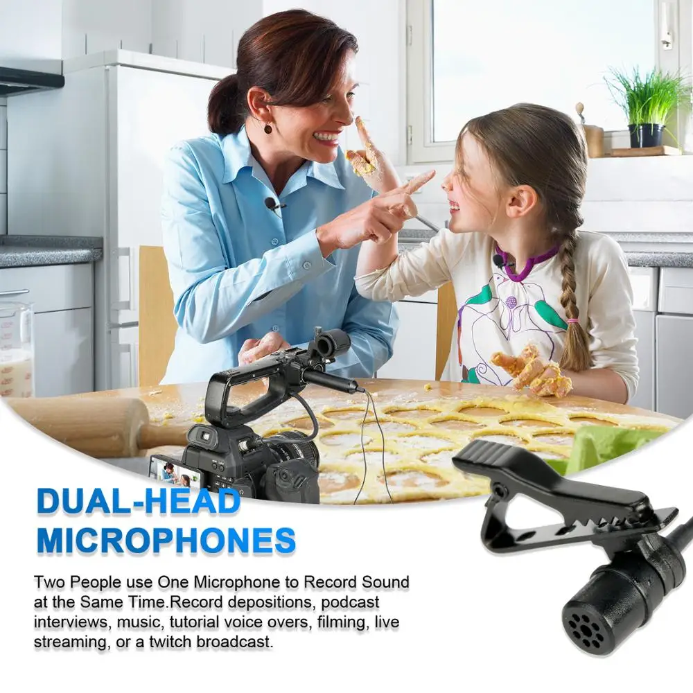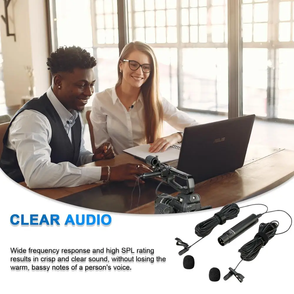 Dual Lavalier Omni-directional Microphone Phantom Power Lapel Clip on Mic Interview Kit Compatible with Camera Camcorder Tascam