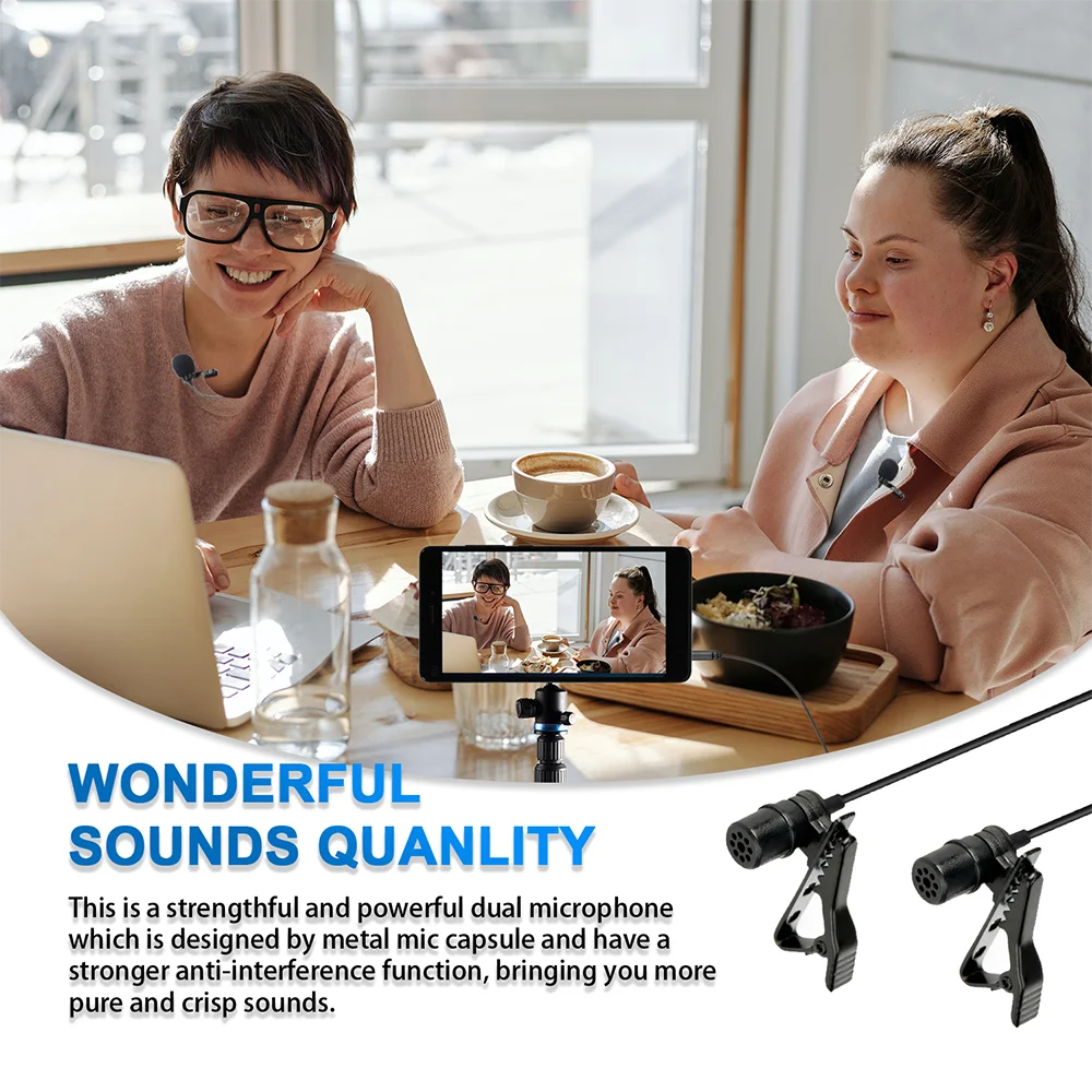Mouriv CM206 Dual-head Lavalier Mic,Professional Lapel Clip-on Omnidirectional Condenser Microphone for Apple ,Android,PC,&more