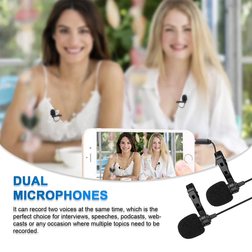 .Gallery of Mouriv CM204 Dual Lavalier Condenser Microphone with Foam Windscreen Windshield for iPhone,Android Smartphones, DSLR Camera