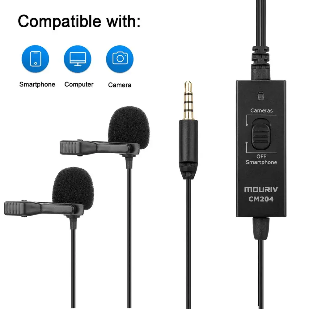 Buy Mouriv CM206 Dual-head Lavalier Mic,Professional Lapel Clip-on Omnidirectional Condenser Microphone for Apple ,Android,PC,&more up to 2098-12-31, and You will Save US $5 or 20%, Becuase You Just Pay for 20.00 not Full Price for 25.00