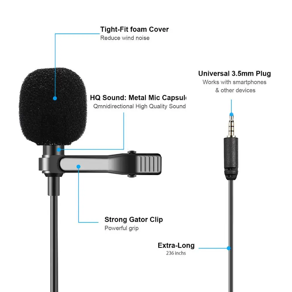 Mouriv CM205 Lavalier Lapel Clip-on Omnidirectional Condenser Microphone for iPad iPod Touch Mini Air Smartphone iPhone