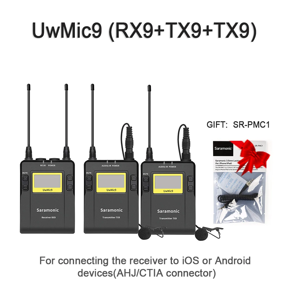 .Gallery of Saramonic UwMic9 Broadcast UHF Camera Wireless Lavalier Microphone System Transmitters and Receivers for DSLR Camera &Camcorder