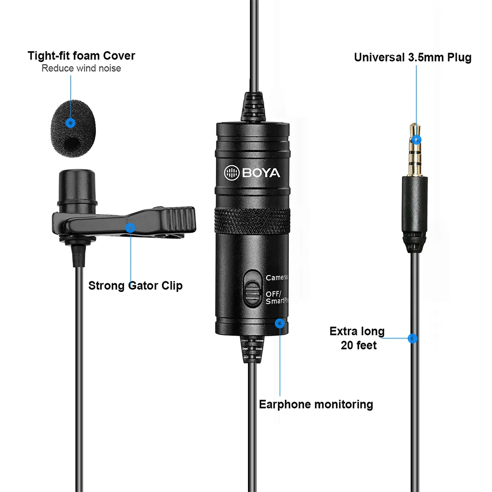 .Gallery for BOYA BY-M1 Professional Lavalier Condenser Broadcast Microphone with USB adapter for Smartphone, PC,DSLR, Camcorder, Recorders