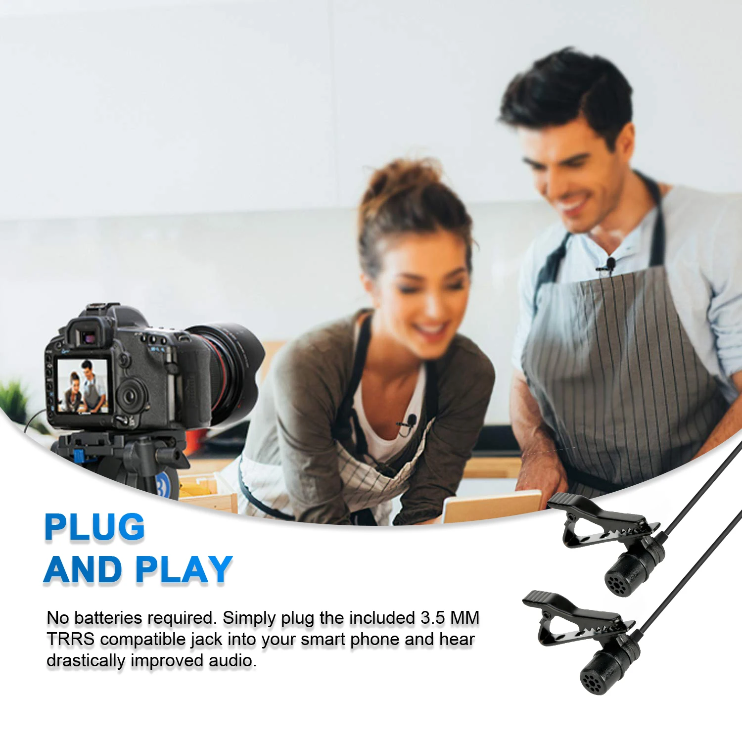 Mouriv CM206 Dual-head Lavalier Mic,Professional Lapel Clip-on Omnidirectional Condenser Microphone for Apple ,Android,PC,&more